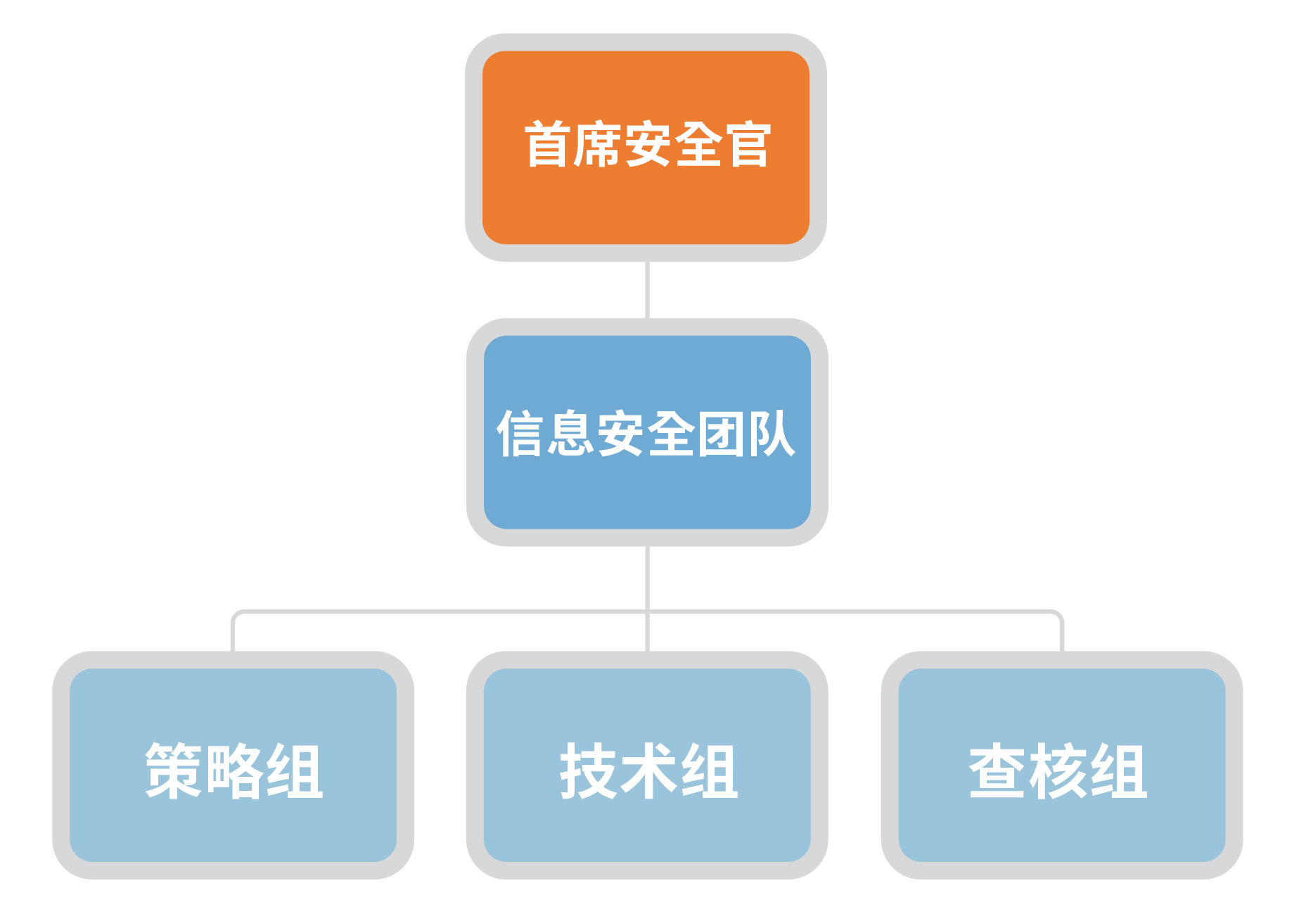 由首席安全官担任团队召集人组建信息安全团队,团队包含 、技术组及查核组,负责统筹、计画、执行及分析信息安全事件并定期汇报资安相关议题及执行成效。